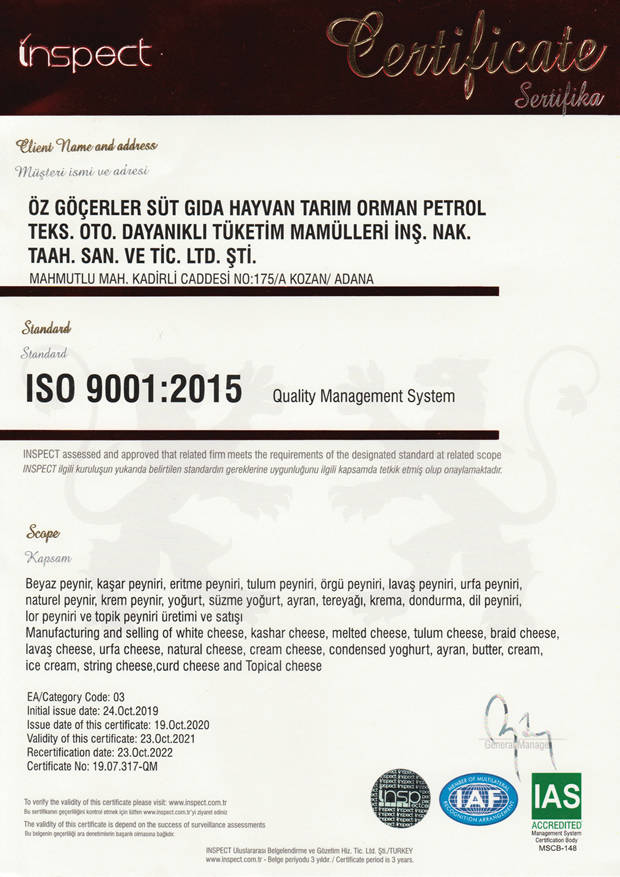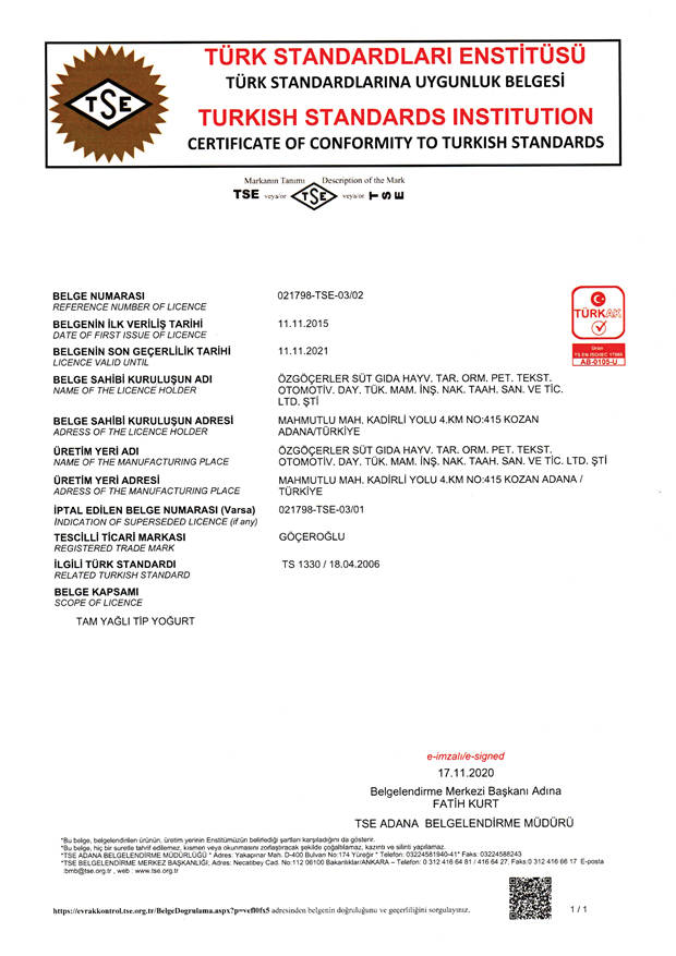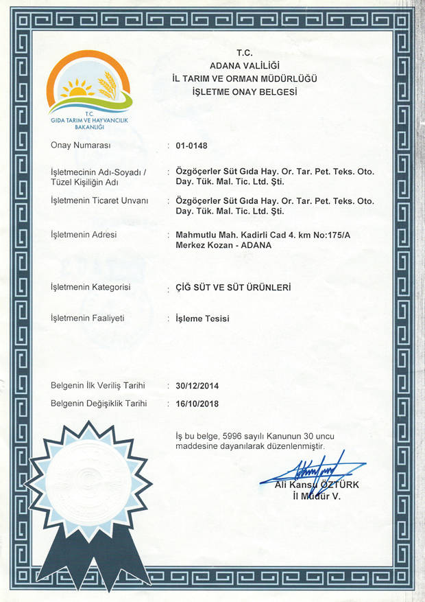Factory: Mahmutlu Mah. Kadirli Yolu Üzeri No:149 Kozan Adana TÜRKİYE